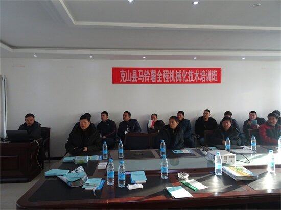 2016年,克山县承担了农业部马铃薯生产全程机械化技术示范项目,结合项目进度要求,克山县农机局日前举办了第一期马铃薯生产全程机械化技术培训班,来自县内部分农机合作社、马铃薯种植大户及项目实施主体技术人员60余人参加了本次培训。